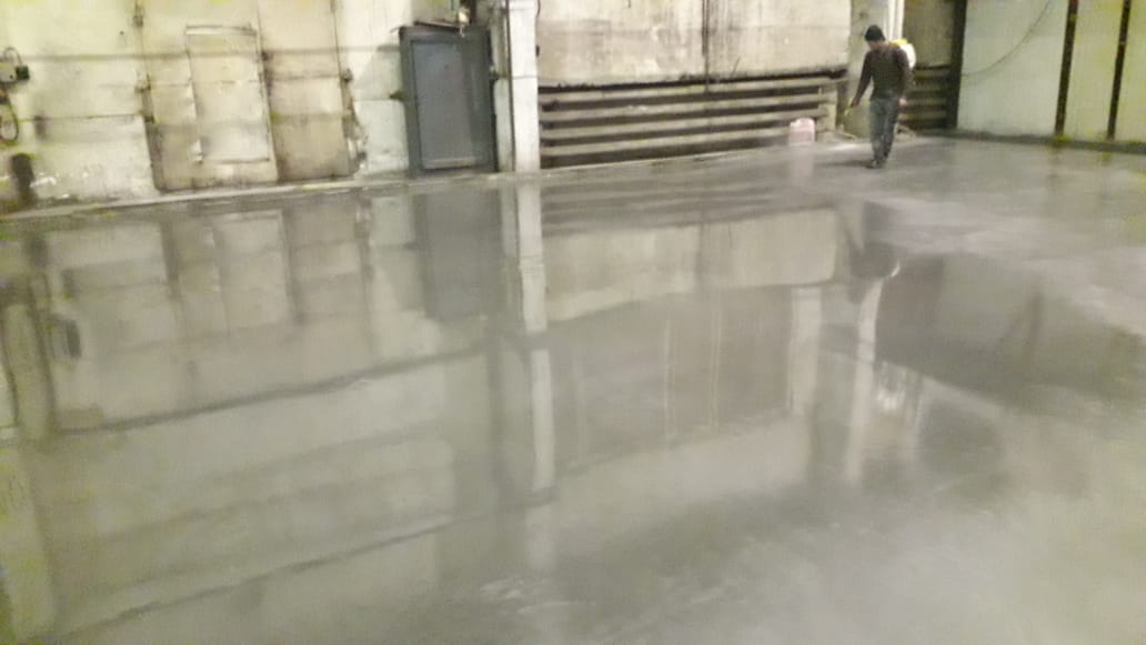 Автопаркинг ЖК «Мещерский лес» г.Москва, Боровское шоссе, 2А — шлифование монолитной бетонной плиты пола с выравниванием и покрытием обеспыливающей пропиткой Площадь 9000 м2 Срок производства: 30 календарных дней